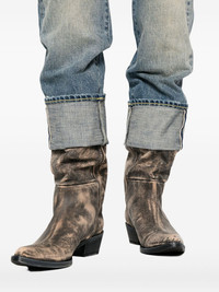 logo-patch jeans Highlights - Blue - Distressed detail - Cuffed hems - Belt loops Imported Composition Cotton 100%, Calf Leather 100% SIZE & FIT Model measurements Height 5 ft 10 in(1.78 m) Bust/Chest 33.46 in(85 cm) Hips 36.22 in(92 cm) Waist 23.22 in(59 cm) Washing instructions Machine Wash
