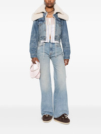 logo-patch jeans Highlights - Light blue - Faded wash - Five-pocket styling Imported Composition Calf Leather 100%, Cotton 98%, Polyurethane 2% SIZE & FIT Model measurements Height 5 ft 11 in(1.8 m) Bust/Chest 31.49 in(80 cm) Hips 36.61 in(93 cm) Waist 24.4 in(62 cm) Washing instructions Machine Wash