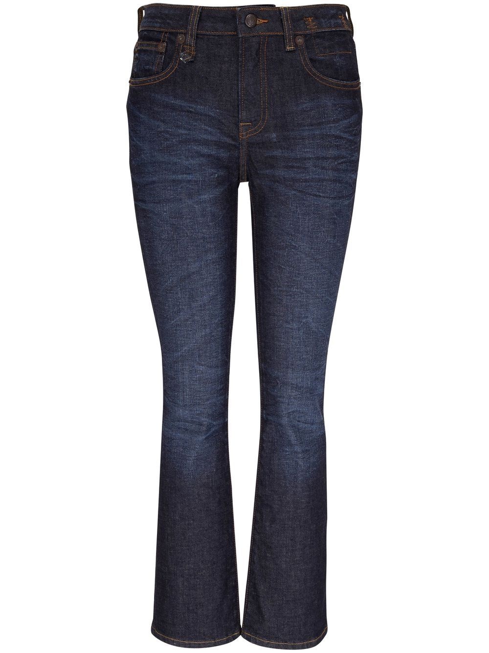 mid-rise cropped jeans blue cotton blend denim contrast stitching mid-rise concealed fly and button fastening belt loops classic five pockets logo patch to the rear cropped leg Made in Italy Composition Cotton 98%, Polyurethane 2% Washing instructions Machine Wash