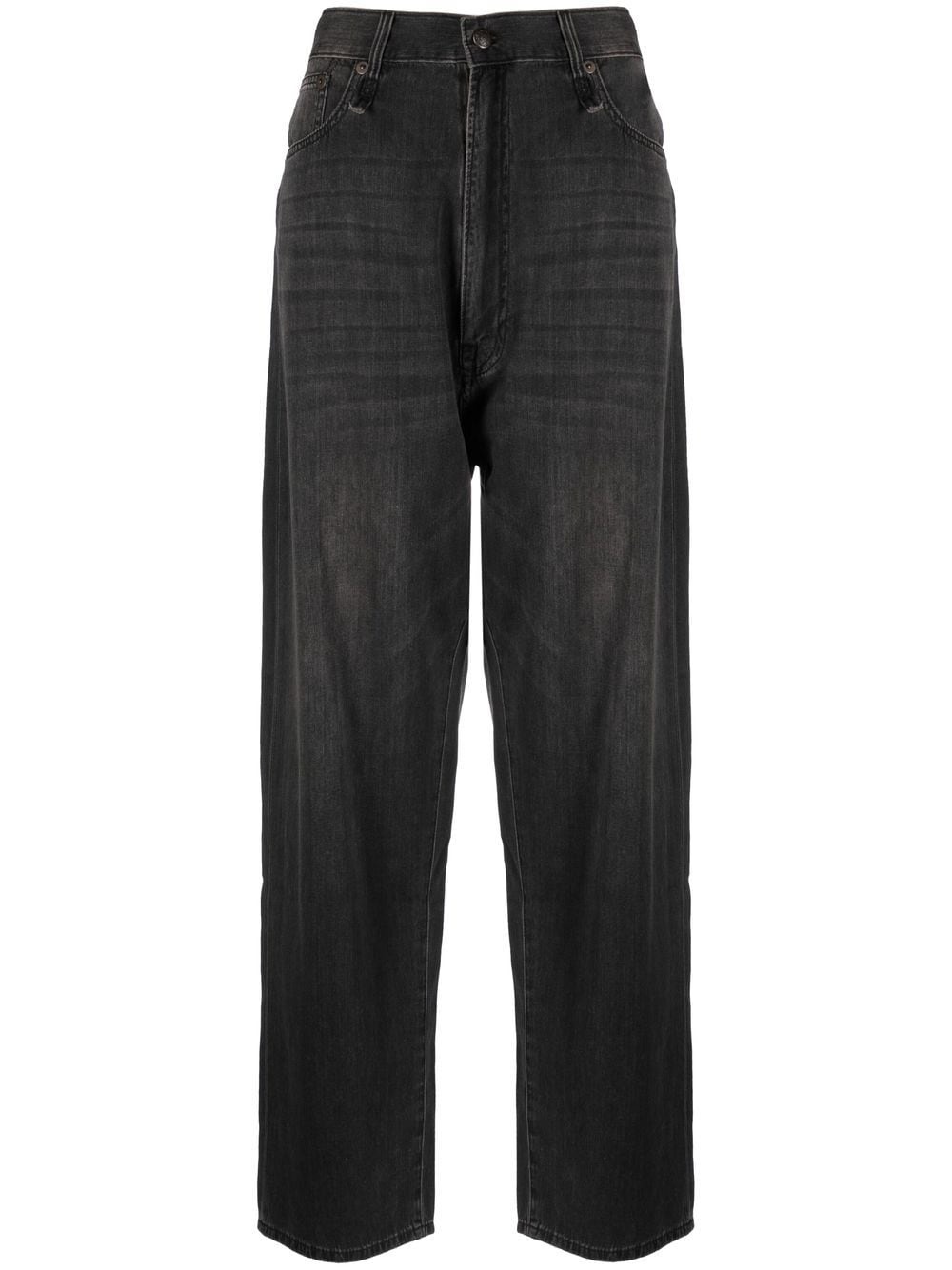 mid-rise wide-leg jeans black cotton mid-rise belt loops front button and zip fastening classic five pockets wide leg Imported Composition Calf Leather 100%, Cotton 100% SIZE & FIT Model measurements Height 5 ft 10 in(1.79 m) Bust/Chest 31.49 in(80 cm) Hips 35.03 in(89 cm) Waist 23.62 in(60 cm) FittingInformation This piece fits true to size. We recommend you get your regular size Designed to be fitted at the waist, loose over the leg Made with a mid-weight non-stretch fabric Washing instructions Machine Wash