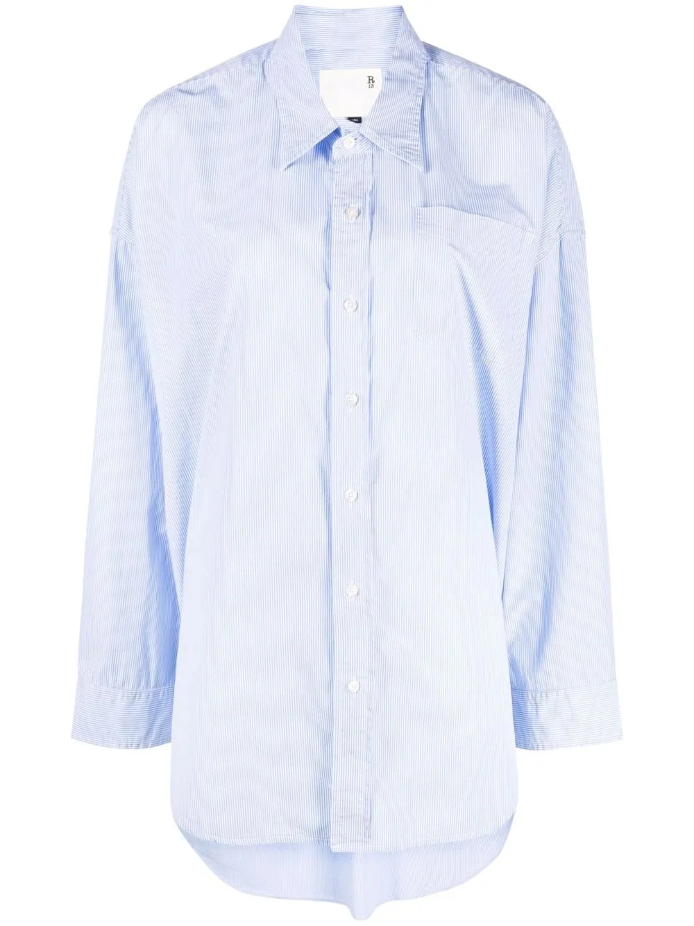 pinstripe cotton shirt R13 encapsulates easy elegance with this pinstripe oversized shirt. Cut from lightweight cotton, this long-sleeved design is created with a high-low hem that accentuates the relaxed, laid-back feel of the piece. Made in Italy Composition Cotton 100% SIZE & FIT Model measurements Height 5 ft 10 in(1.79 m) Bust/Chest 31.49 in(80 cm) Hips 35.03 in(89 cm) Waist 24.01 in(61 cm) Measurement SLEEVE LENGTH 18.89 in(48 cm) Shoulder Width 25.19 in(64 cm) LENGTH 31.88 in(81 cm) BUST 59.84 in(152 cm) FittingInformation This piece fits true to size. We recommend you get your regular size Cut for an oversized fit Made with a mid-weight non-stretch fabric Washing instructions Machine Wash