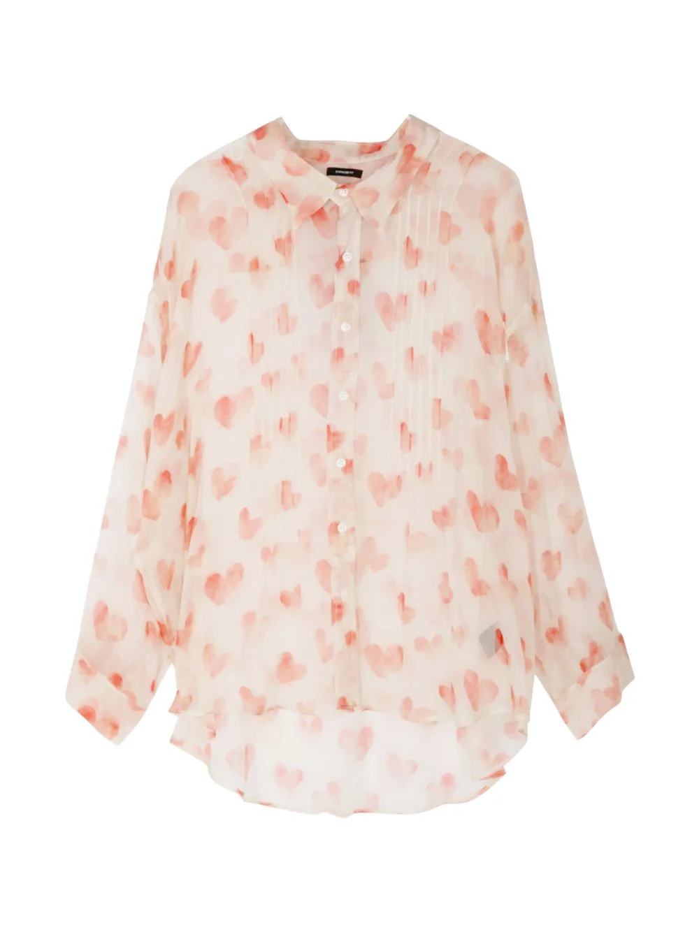 pintuck heart blouse Highlights - Beige/red - Heart print - Pintuck detail - Drop neck - Silk Made in United States Composition Silk 100% Washing instructions Dry Clean Only