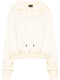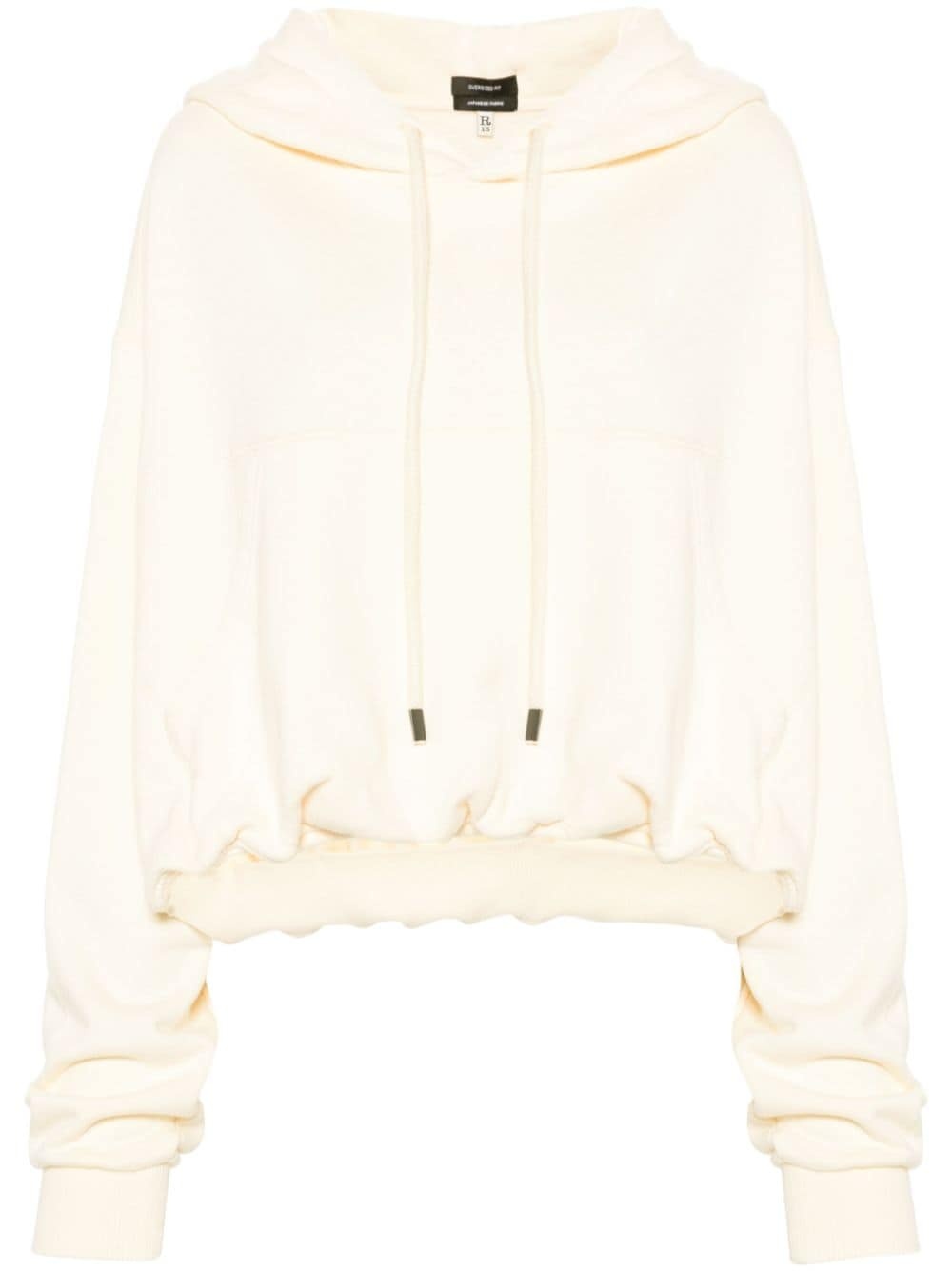 puffball hoodie Highlights - Ivory white - Cotton - Jersey texture - Slouchy drawstring hood - Drop shoulder - Long sleeves - Front pouch pocket - French terry lining - Puffball hem - Ribbed cuffs and hem Imported Composition Cotton 100% SIZE & FIT Model measurements Height 5 ft 9 in(1.75 m) Bust/Chest 34.64 in(88 cm) Hips 36.61 in(93 cm) Waist 26.37 in(67 cm) FittingInformation Designed to be unstructured, offering a loose fit throughout Made from a midweight non-stretch fabric, this piece offers minimal elasticity when worn This piece fits true to size – take your usual size
