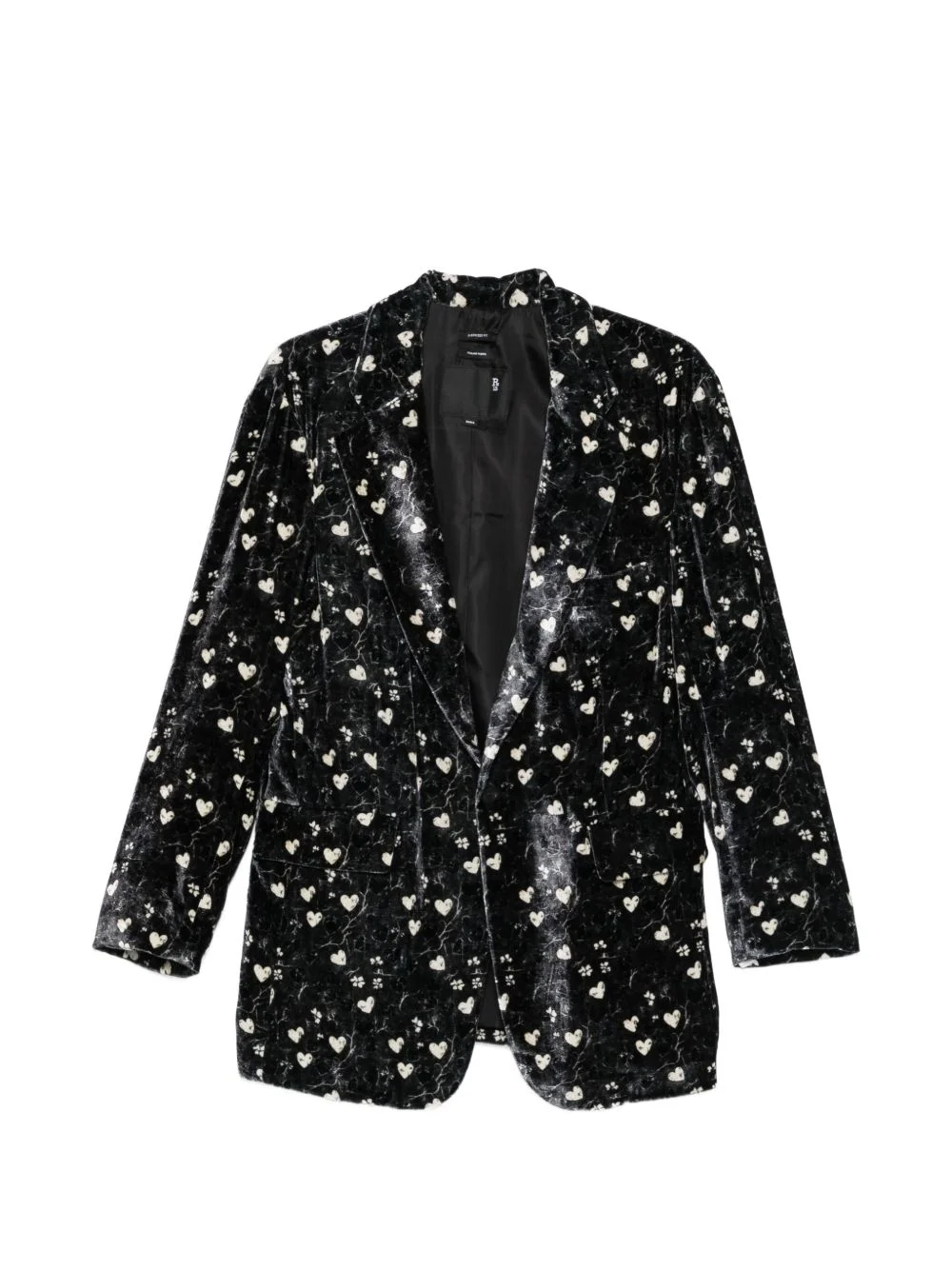 Ragged heart-print blazer Highlights - Black - Heart print - Front pockets - Long sleeves - Single-breasted Made in United States Composition Outer: Viscose 82%, Silk 18% Lining: Polyester 52%, Cupro 48% Washing instructions Dry Clean Only