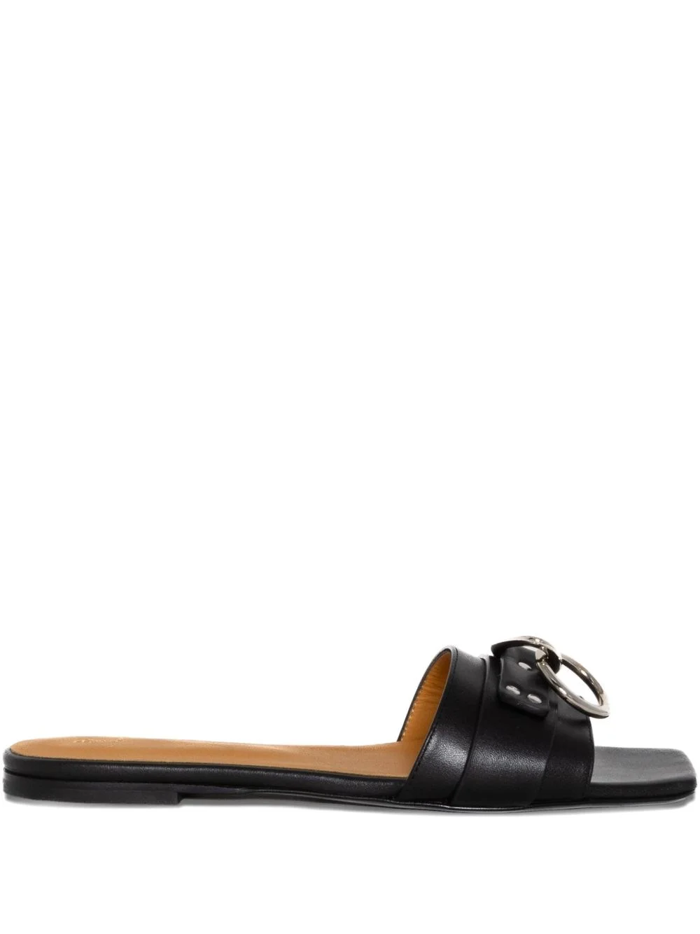 ring-detail slides Highlights - Black - Silver-tone hardware - Stud embellishment - Open toe - Flat sole Made in Italy Composition Outer: Calf Leather 100% Lining: Calf Leather 100% Sole: Calf Leather 100%