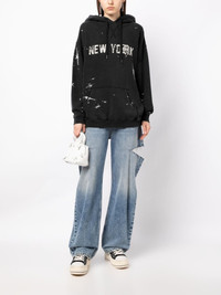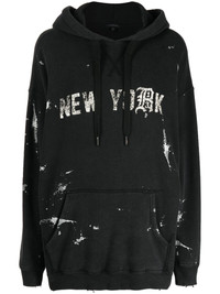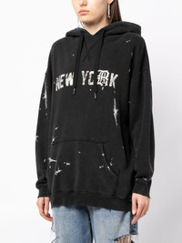 slogan-print distressed hoodie Highlights - Black - Cotton blend - Distressed effect - Slogan print to the front - Paint splatter detail - Drawstring hood - Drop shoulder - Long sleeves - Front pouch pocket - Ribbed cuffs and hem Imported Composition Body: Cotton 85%, Lyocell 15% SIZE & FIT Model measurements Height 5 ft 10 in(1.78 m) Bust/Chest 30.31 in(77 cm) Hips 34.64 in(88 cm) Waist 24.01 in(61 cm) Measurement SLEEVE LENGTH 20.47 in(52 cm) Shoulder Width 24.01 in(61 cm) LENGTH 26.77 in(68 cm) BUST 49.6 in(126 cm) FittingInformation Designed for an oversized fit, offering additional room throughout Made from a midweight non-stretch fabric, this piece offers minimal elasticity when worn This piece fits true to size – take your usual size Washing instructions Machine Wash