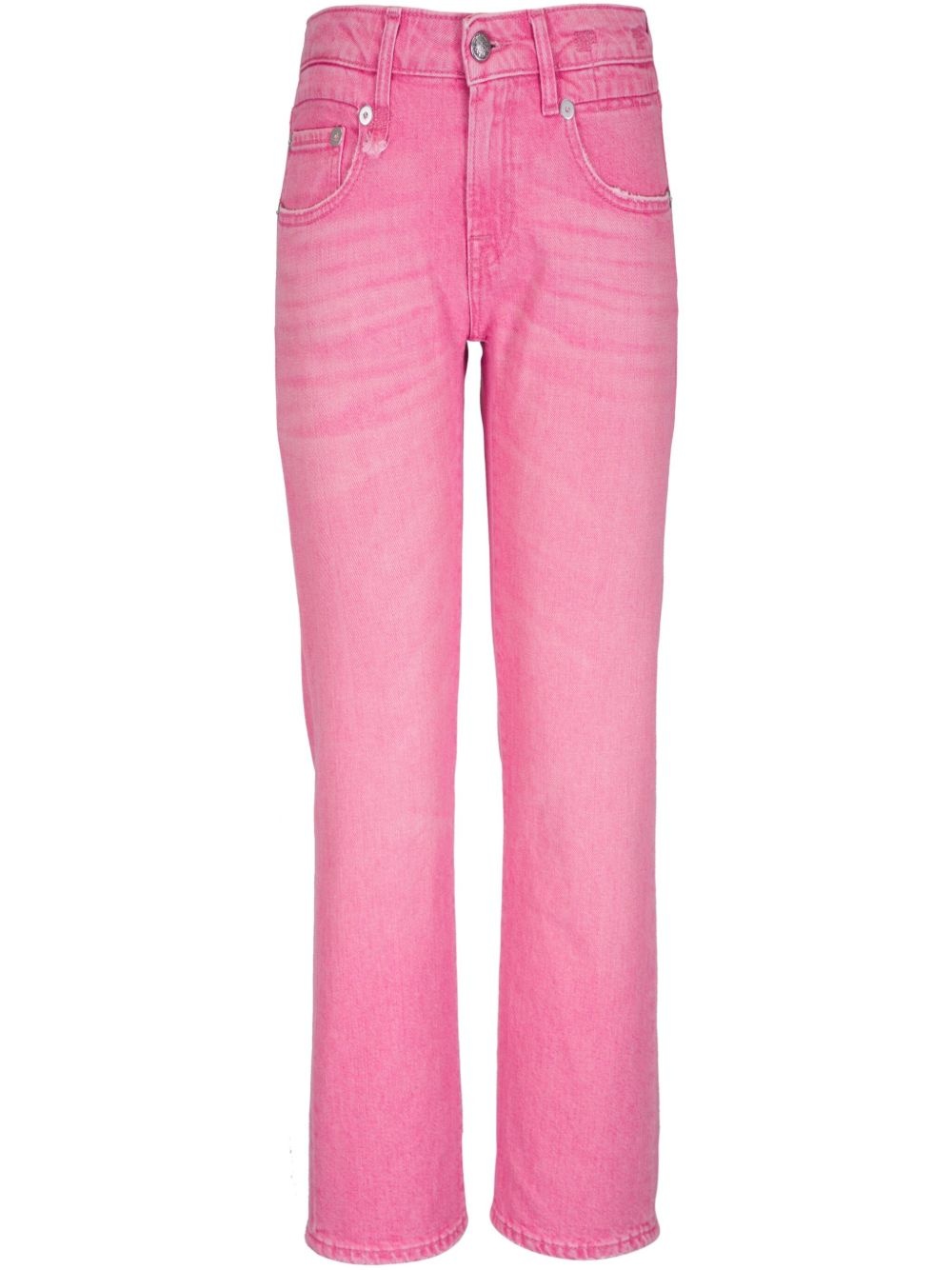 straight-leg jeans Highlights - Fuchsia pink - Concealed fly and button fastening - Belt loops - Classic five pockets - Applique logo Made in United States Composition Cotton 99%, Spandex/Elastane 1% SIZE & FIT Measurement FRONT RISE 8.46 in(21.5 cm) HIPS 36.22 in(92 cm) WAIST 29.92 in(76 cm) Washing instructions Machine Wash