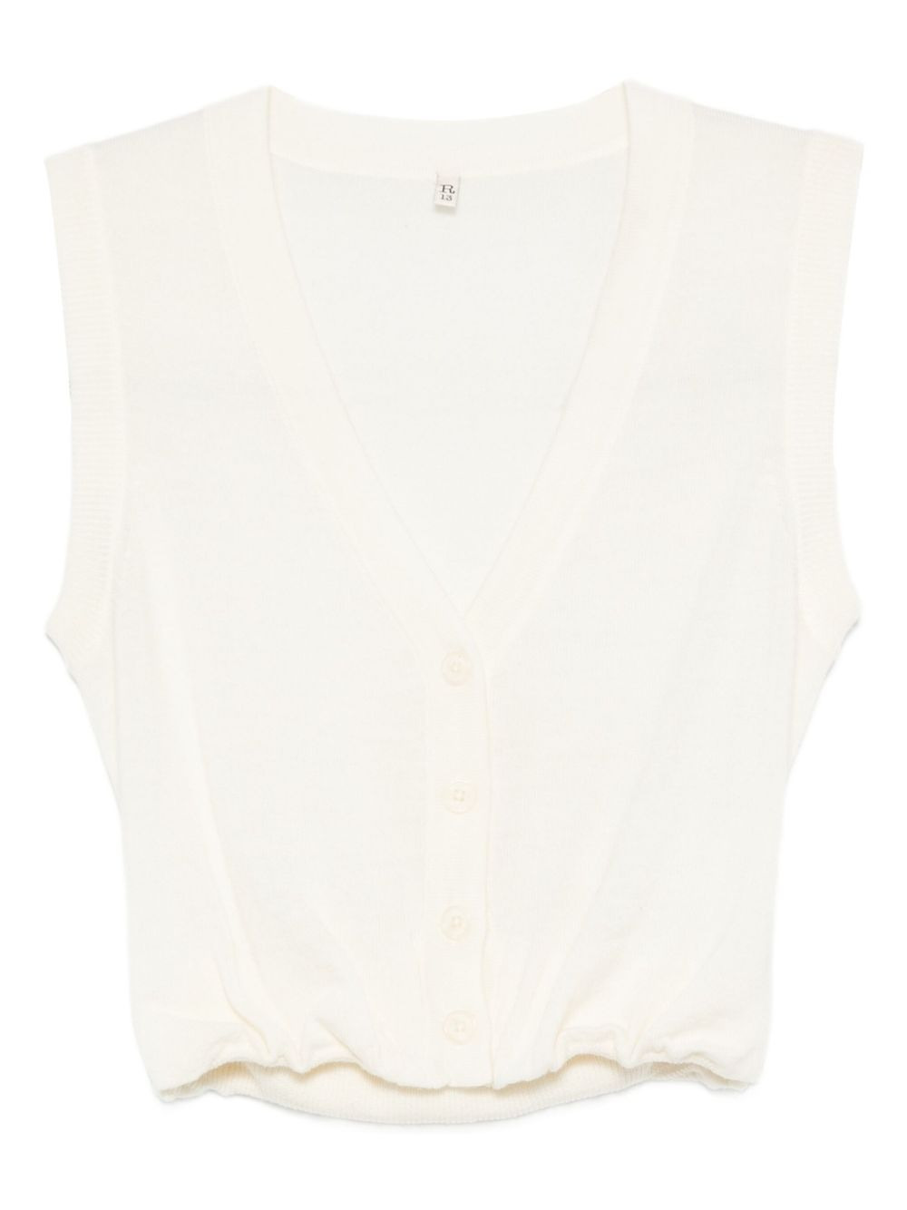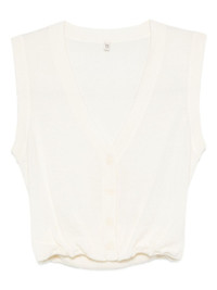 V-neck cropped vest Highlights - Beige - Front button fastening - Sleeveless - Gathered detailing - Straight hem Imported Composition Merino 100% SIZE & FIT Model measurements Height 5 ft 10 in(1.79 m) Bust/Chest 31.88 in(81 cm) Hips 35.43 in(90 cm) Waist 23.62 in(60 cm)