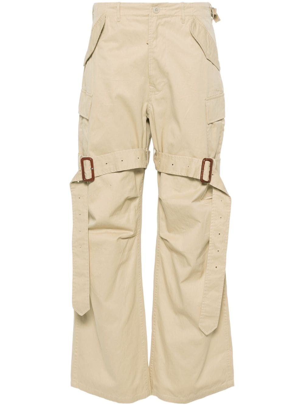 wide-leg cotton cargo trousers Highlights - Khaki - Cotton - Twill weave - Wide leg - Belt loops - Front stud-fastening pockets - Belt at the centre of the leg - Two side cargo pockets - Rear stud-fastening pockets - Front button and zip fastening Imported Composition Cotton 100% SIZE & FIT Model measurements Height 5 ft 11 in(1.8 m) Bust/Chest 31.49 in(80 cm) Hips 36.61 in(93 cm) Waist 24.4 in(62 cm) FittingInformation Designed with a wide-leg cut, these trousers allow for a close fit at the waist and offer a loose and roomy fit over the leg The adjustable tabs allow for fitted preferences Made from a midweight non-stretch fabric This piece fits true to size – take your usual size Washing instructions Machine Wash