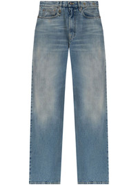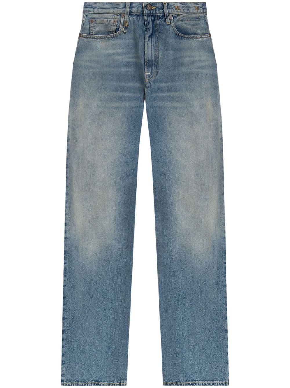 wide-leg distressed jeans Highlights - Light blue - High-rise waist - Faded finish - Wide-leg silhouette - Front button fastening - Classic five-pocket design - Belt loops Made in Italy Composition Cotton 100%