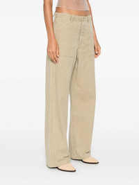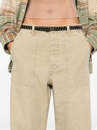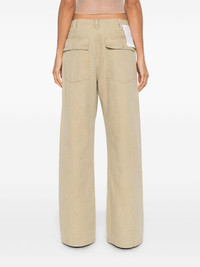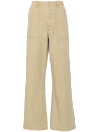 wide-leg utility trousers Highlights - Taupe - Cotton - Herringbone - Belt loops - Two diagonal pockets to the sides - Two rear flap pockets - Wide leg - Concealed fly and button fastening Imported Composition Cotton 100% SIZE & FIT Model measurements Height 5 ft 10 in(1.78 m) Bust/Chest 33.07 in(84 cm) Hips 36.61 in(93 cm) Waist 24.8 in(63 cm) FittingInformation Designed with a wide-leg cut, these trousers allow for a close fit at the waist and offer a loose and roomy fit over the leg Made from a midweight non-stretch fabric This piece fits small – take one size up Washing instructions Machine Wash