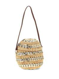 1969 metal-disc raffia ball handbag Highlights - Beige - Raffia construction - Metal-disc embellishment - Hook closure - Leather handle - Spherical shape Imported Composition Outer: Raffia 60%, Calf Leather 30%, Brass 10% SIZE & FIT Measurement HEIGHT 5.31 in(13.5 cm)