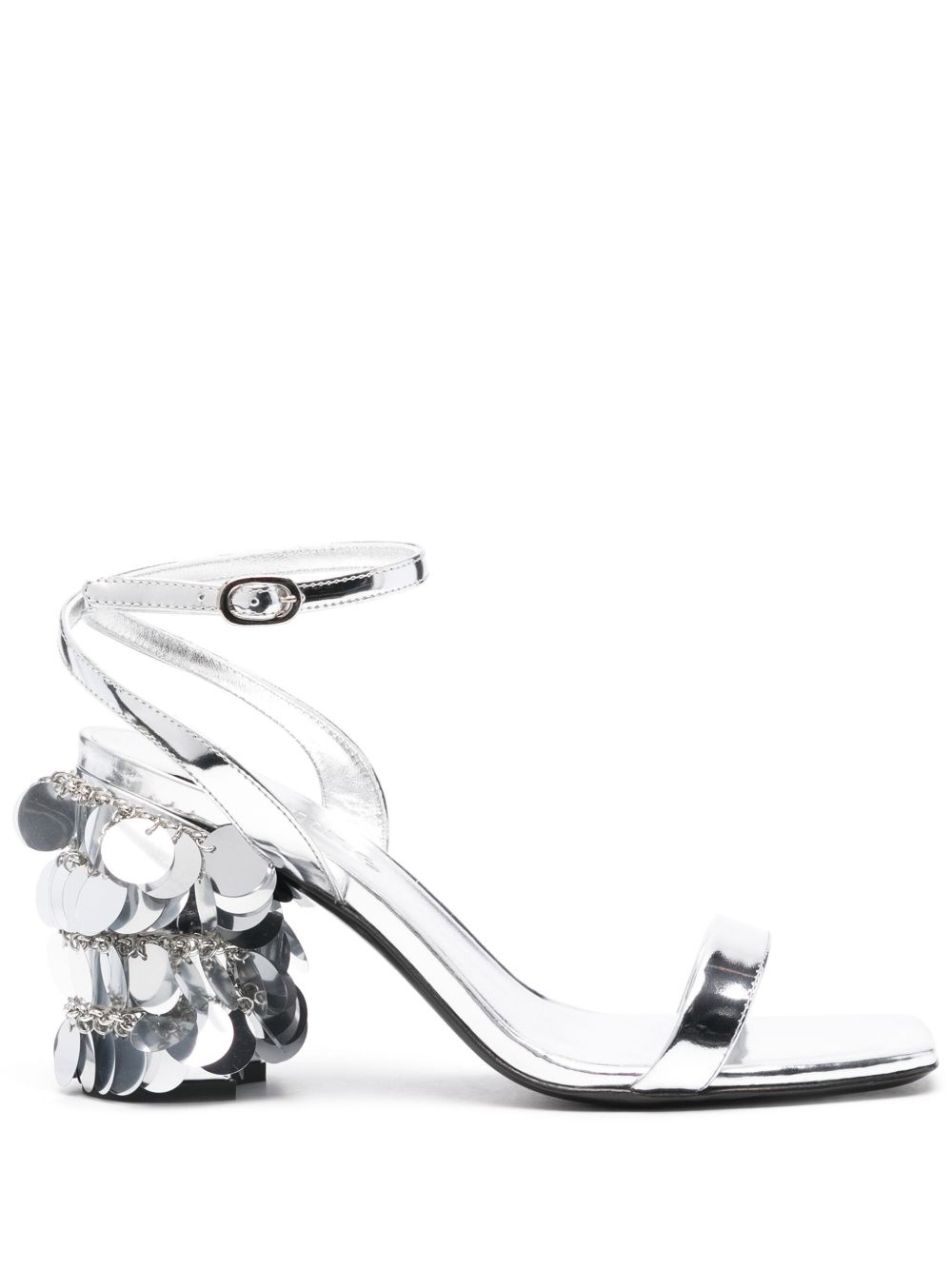 SILVER SANDALS WITH SPARKLE DISCS HEELS