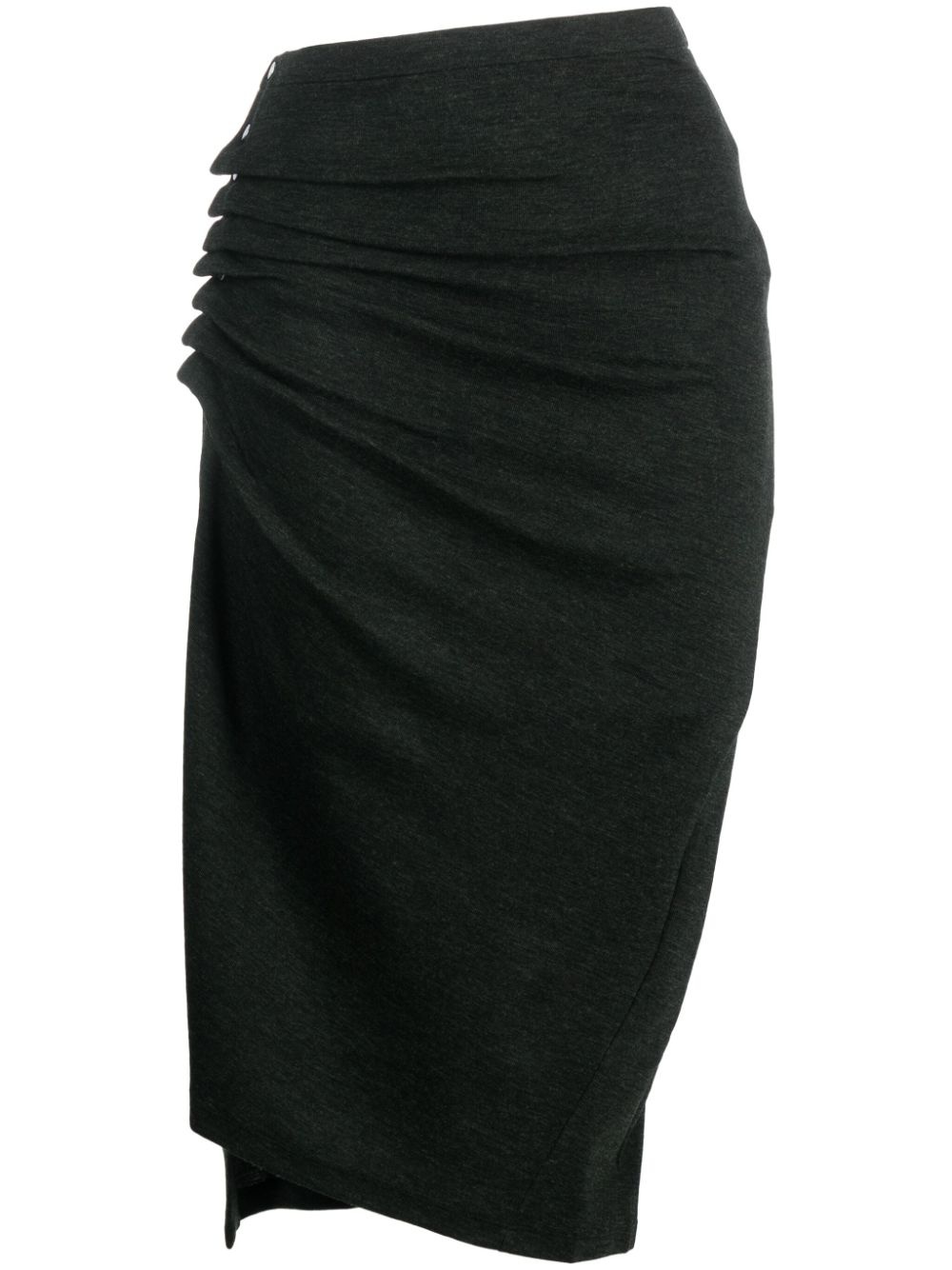 asymmetric gathered midi skirt Highlights - Forest green - Gathered detailing - Asymmetric design - Side slit - Knee-length Imported Composition Wool 98%, Elastane 2% SIZE & FIT Model measurements Height 5 ft 10 in(1.78 m) Bust/Chest 33.46 in(85 cm) Hips 36.22 in(92 cm) Waist 23.22 in(59 cm) FittingInformation This midi-length skirt is intended to be worn high on the waist The elasticated waist allows for a comfortable fit Made from a midweight stretch fabric, this piece offers elasticity and flexibility when worn This piece fits true to size – take your usual size Washing instructions Dry Clean Only