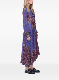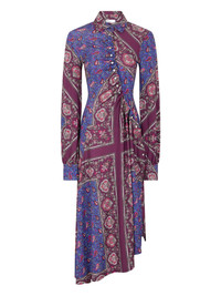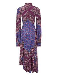 asymmetric shirt dress Highlights - Burgundy and blue - Paisley print - Button-up front - Long sleeves - Gathered detailing at waist - Asymmetric hemline Imported Composition Viscose 95%, Elastane 5% Washing instructions Read Manufacturer Guidelines