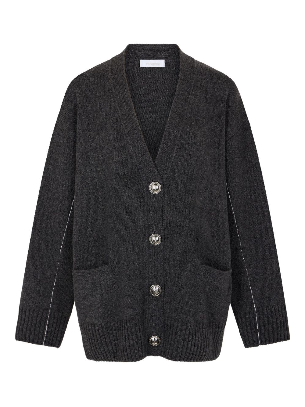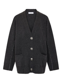 buttoned-up cardigan Highlights - Charcoal gray - Deep v-neck - Button front fastening - Two front pockets - Ribbed cuffs Imported Composition Merino 90%, Cashmere 10% Washing instructions Read Manufacturer Guidelines