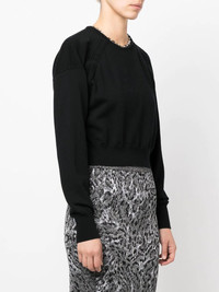 chain-link neckline sweater black merino wool blend chain-link detailing fine knit round neck rear hook and eye fastening keyhole detail to the rear long sleeves straight hem ribbed trim Made in France Composition Merino 95%, Spandex/Elastane 5% SIZE & FIT Model measurements Height 5 ft 9 in(1.76 m) Bust/Chest 33.46 in(85 cm) Hips 37.79 in(96 cm) Waist 25.59 in(65 cm) FittingInformation This piece fits true to size. We recommend you get your regular size Cut for a loose fit Made with a mid-weight stretch fabric Washing instructions Hand Wash