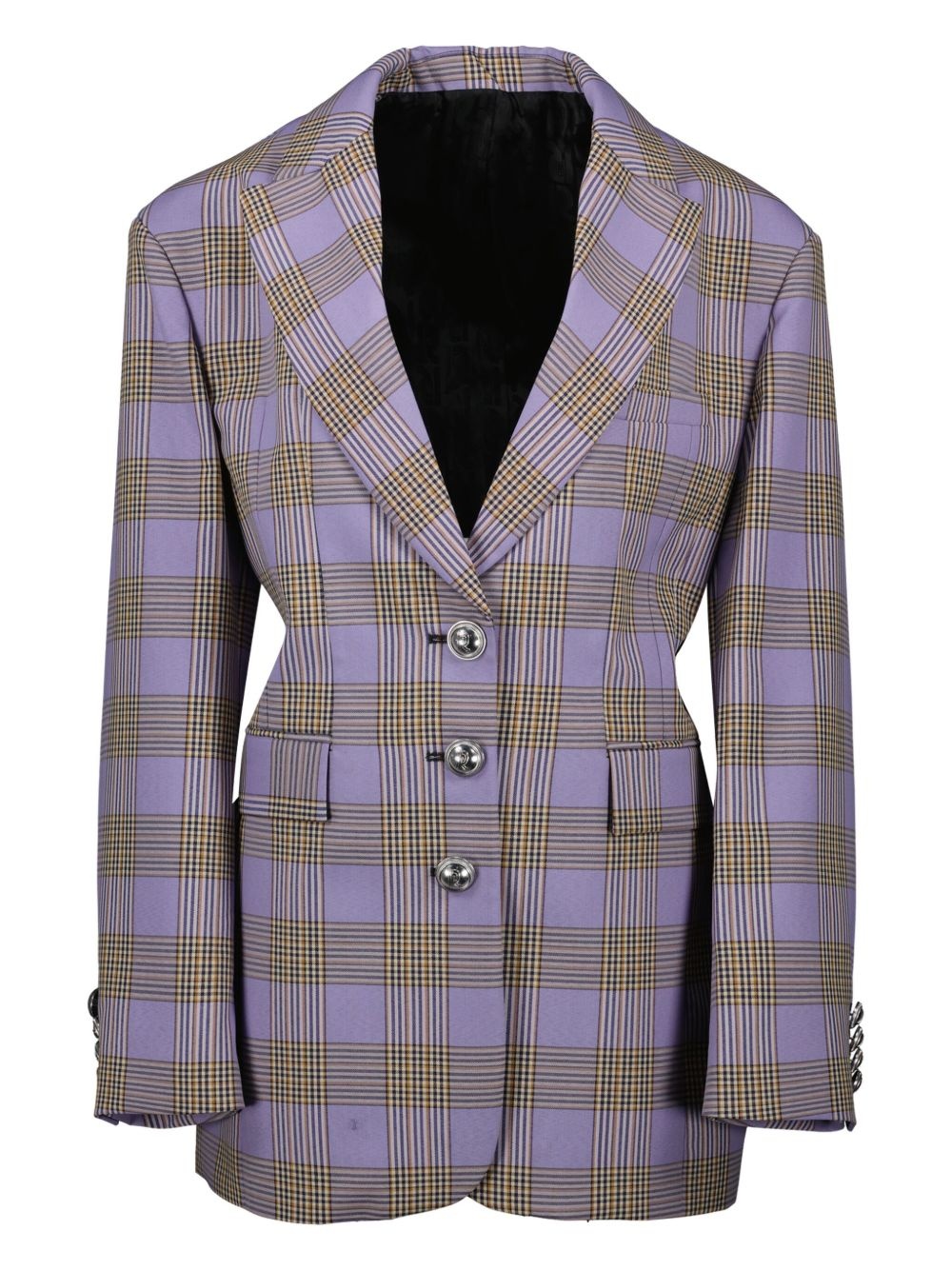 checked blazer Highlights - Lilac purple - Front button fastening - Two front flap pockets - Notched lapels - Long sleeves Imported Composition Viscose 100%, Wool 100% Washing instructions Read Manufacturer Guidelines