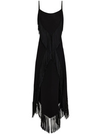 crepe maxi dress Highlights - Black - Cowl neck - Sleeveless - Fringe detailing - Long length Imported Composition Acetate 80%, Polyethylene 20% SIZE & FIT FittingInformation Designed for a slim fit that sits just away from the body offering a close yet comfortable fit Made from a midweight non-stretch fabric