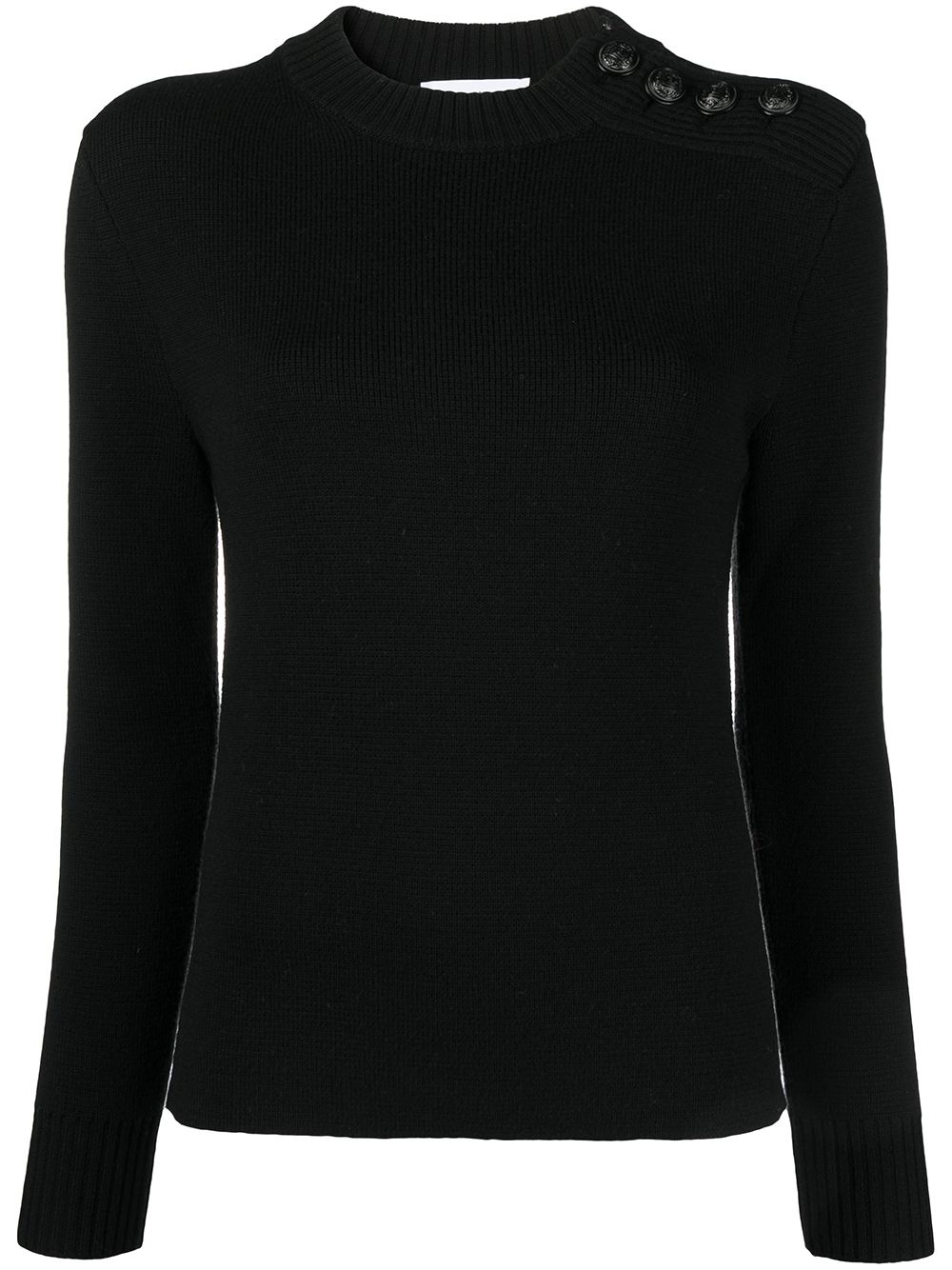 crew-neck knit jumper black merino wool knitted construction crew neck long sleeves Imported Composition Merino 100%, Virgin Wool 100% SIZE & FIT Model measurements Height 5 ft 10 in(1.78 m) Bust/Chest 33.07 in(84 cm) Hips 35.82 in(91 cm) Waist 25.98 in(66 cm) FittingInformation This piece fits true to size. We recommend you get your regular size Cut for a slim fit Made with a mid-weight fabric Washing instructions Dry Clean Only