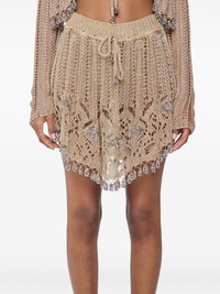 crochet skirt Highlights - Beige - Elasticated drawstring waistband - Cut-out detailing - Bead embellishment Imported Composition Viscose 65%, Paper 20%, Fabric 15% Washing instructions Read Manufacturer Guidelines