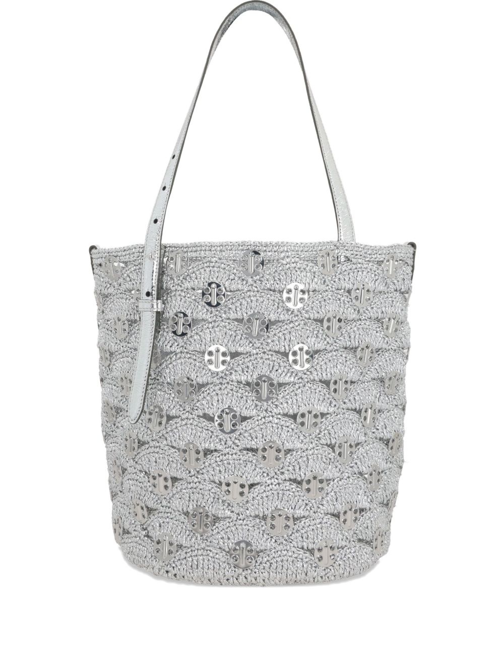 crochet tote bag Highlights - Silver-tone - Embellished design - Top handles - Logo detailing - Spacious interior - Versatile style Imported Composition Outer: Metal 100%, Leather 100%, Fabric 100%