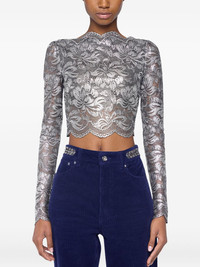 cropped top Highlights - Grey - Lace embroidery - Long sleeves - Lettuce hem Imported Composition Polyamide 90%, Elastane 10% Washing instructions Read Manufacturer Guidelines