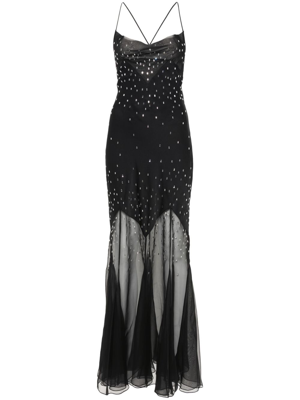 crystal-embellished long dress Highlights - Black - Organic cotton blend/recycled polyester - Satin finish - Semi-sheer panels - Crystal embellishment - Spaghetti straps - Cowl neck - Rear criss-cross straps - Open back - Straight hem - Floor-length - Partial lining - Concealed rear zip fastening Imported Composition Recycled Polyester 100%, Polyamide 100%, Organic Cotton 95%, Nylon 5% SIZE & FIT Model measurements Height 5 ft 11 in(1.8 m) Bust/Chest 33.07 in(84 cm) Hips 37.4 in(95 cm) Waist 25.19 in(64 cm) Measurement HIPS 42.51 in(108 cm) LENGTH 66.92 in(170 cm) WAIST 37 in(94 cm) FittingInformation Designed for a slim fit that sits just away from the body offering a close yet comfortable fit Made from a midweight non-stretch fabric This piece fits true to size – take your usual size
