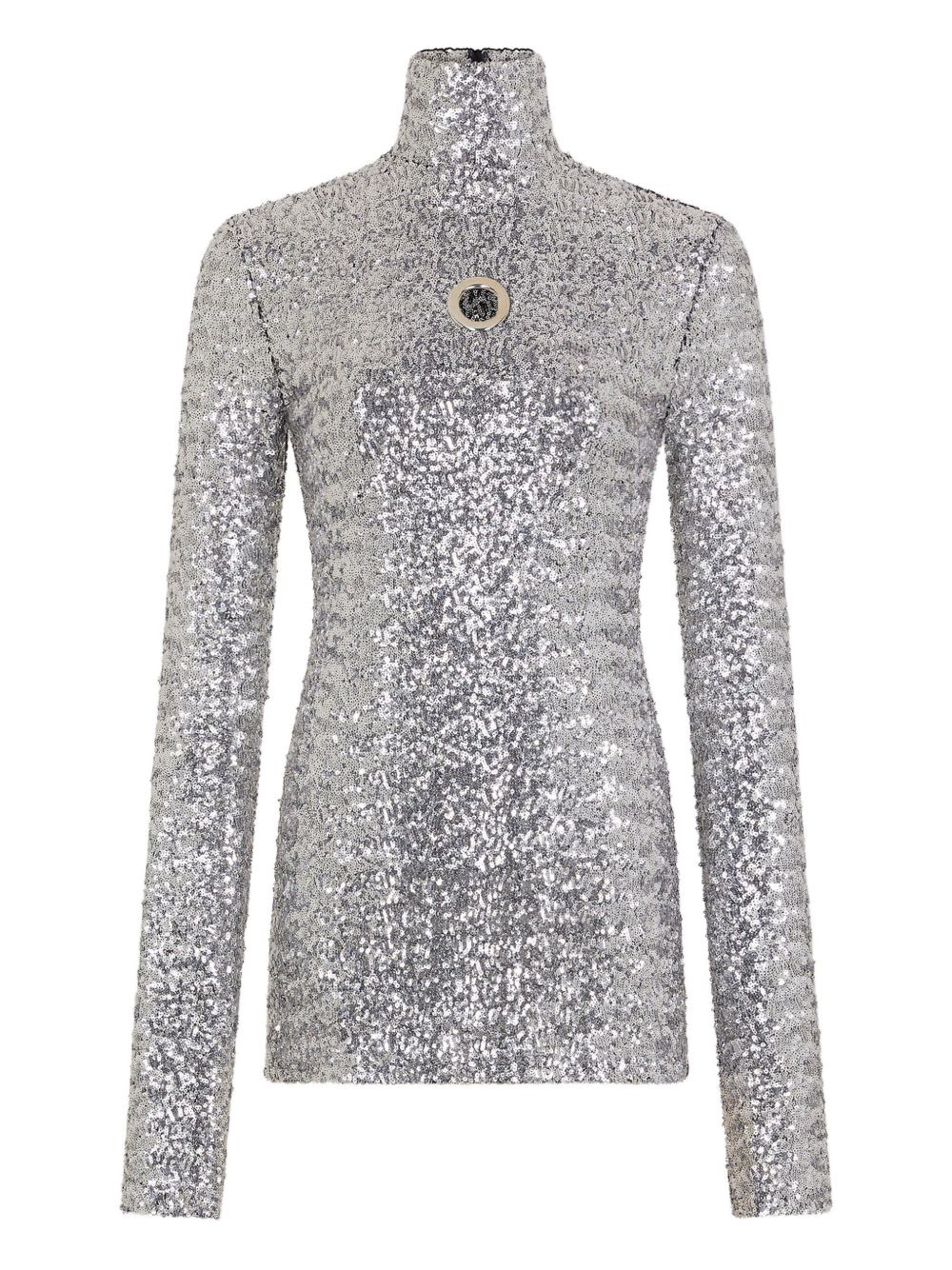 cut-out long-sleeved top Highlights - Silver - Sequin embellishment - High neck - Long sleeves - Keyhole detail - Close-fitting Imported Composition Polyester 100%