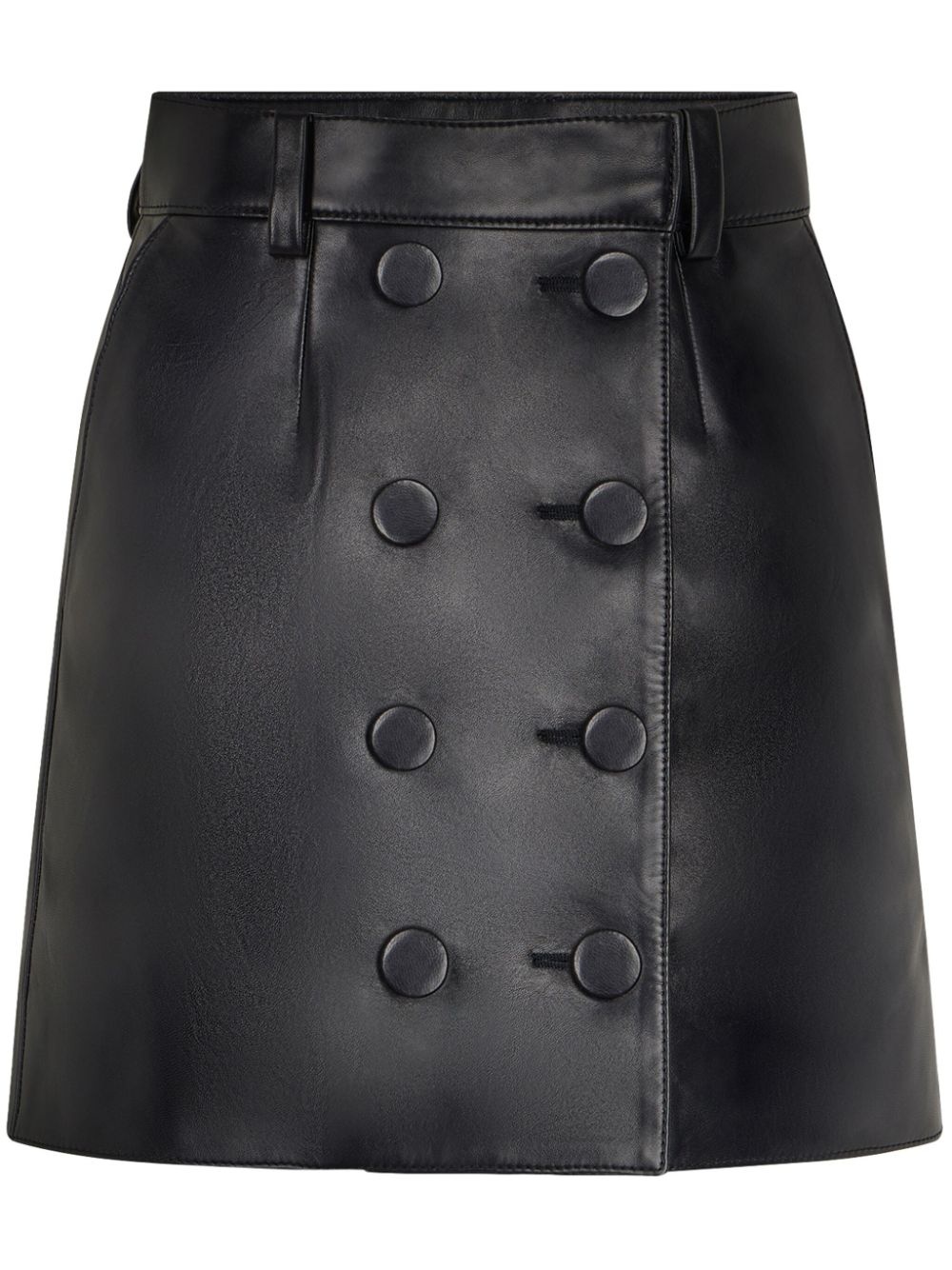 double-buttoned leather miniskirt