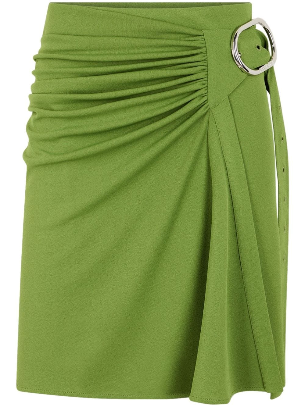 draped crepe wrap skirt Highlights - Apple green - Crepe texture - Draped detailing - Ruched detailing - Silver-tone hardware - Wrap design - High waist - Belted waist - Buckle fastening - Thigh-length - Asymmetric hem Imported Composition Viscose 62%, Polyamide 29%, Elastane 9% Washing instructions Read Manufacturer Guidelines