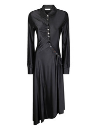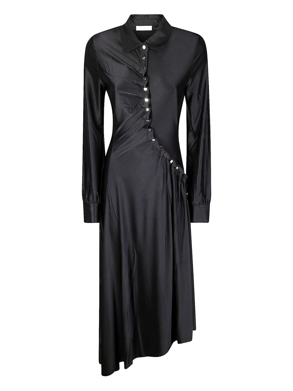 draped long-sleeve dress Highlights - Black - Jersey sleeves - Snap button fastening - Draped detail - Asymmetric hem - Long sleeves Imported Composition Viscose 90%, Spandex/Elastane 10%