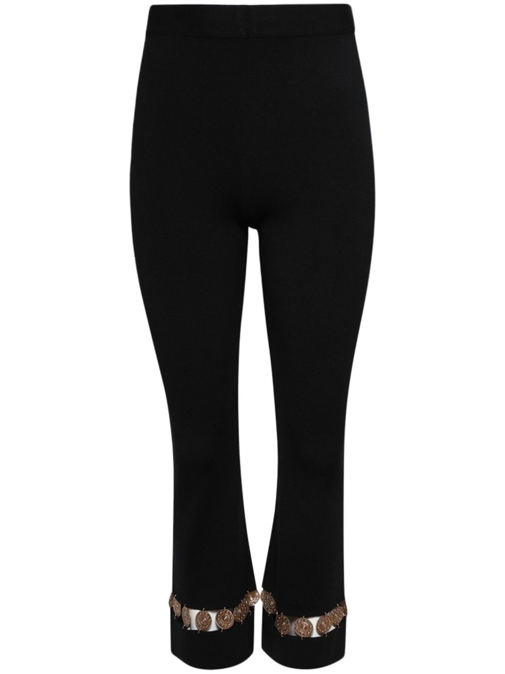 embellished straight-leg trousers Highlights - Black - Wool blend - Cut-out detailing - Flared hem - Bronze-tone circular embellishment Made in Italy Composition Wool 69%, Silk 23%, Polyamide 7%, Spandex/Elastane 1%