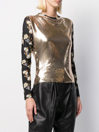 embellished tank top Gold-toned aluminium embellished tank top from Paco Rabanne featuring a cowl neck, a sleeveless design, a side button fastening and a straight hem. Made in France Composition Aluminium 100% SIZE & FIT Model measurements Height 5 ft 10 in(1.79 m) Bust/Chest 32.28 in(82 cm) Hips 35.03 in(89 cm) Waist 23.62 in(60 cm) FittingInformation This piece fits true to size. We recommend you get your regular size Cut for a slim fit Made with a heavyweight non-stretch fabric