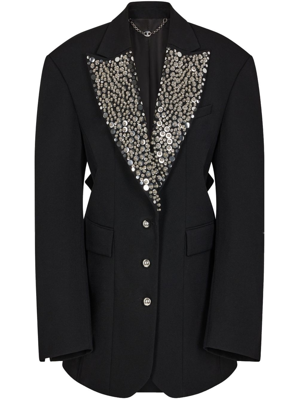 embroidered blazer Highlights - Black - Sequin embellishment - Front button fastening - Long sleeves Imported Composition Wool 100%