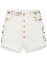EMBROIDERED OFF WHITE DENIM SHORTS