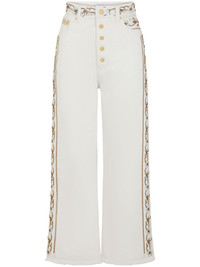 embroidered mid-rise cropped jeans Highlights - White - Denim - Embroidered design - Floral motif - Gold-tone hardware - Fringed edge - Mid-rise - Cropped - Flared hem - Belt loops - Front button fastening - Classic five pockets Made in Italy Composition Denim 100%