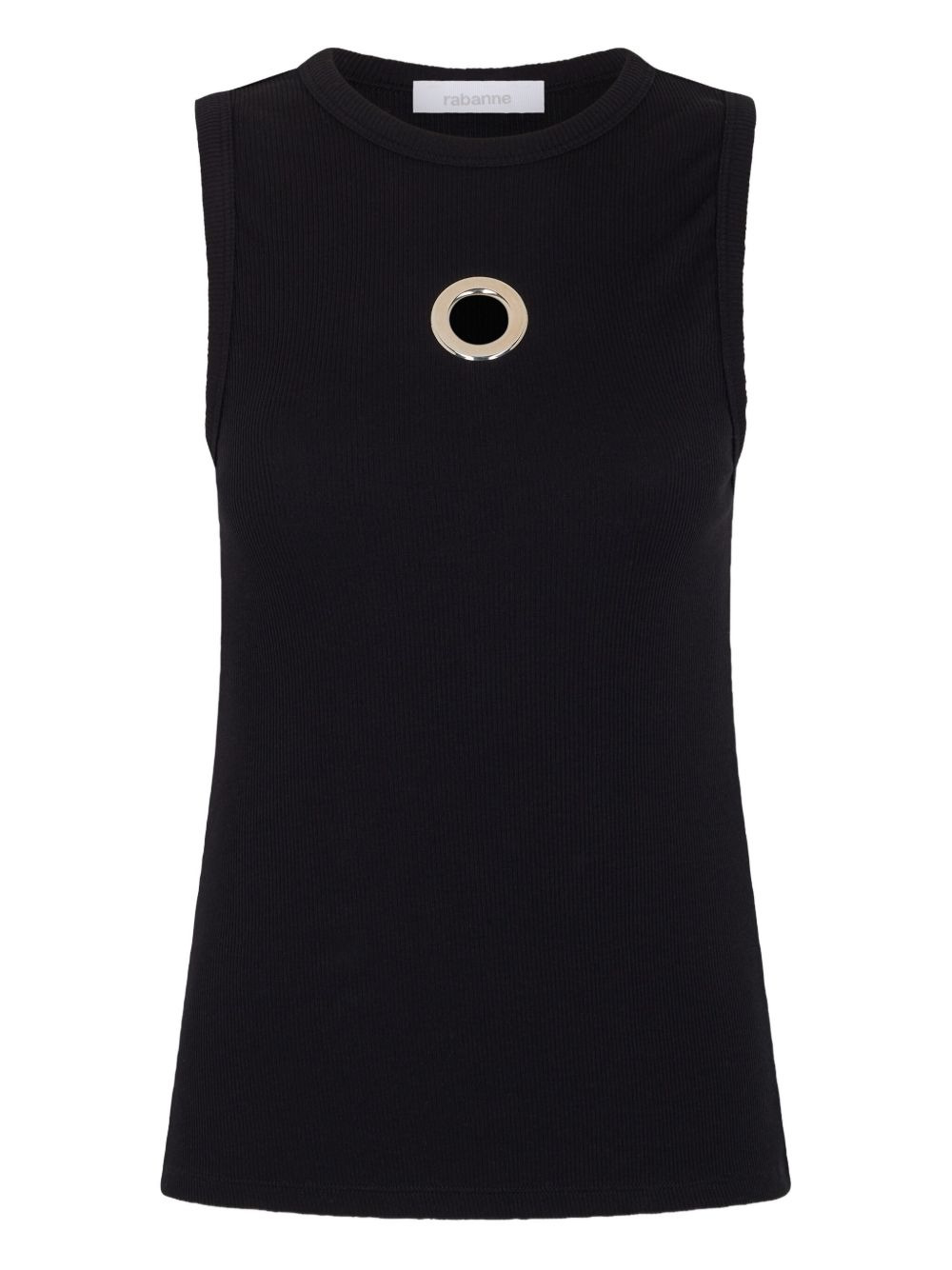 eyelet-detail ribbed tank top Highlights - Black - Ribbed texture - Sleeveless - Round neck - Eyelet detail - Metallic eyelet Imported Composition Cotton 97%, Elastane 3% Washing instructions Read Manufacturer Guidelines