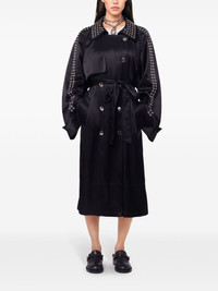 eyelet-detail trench coat Highlights - Black - Double-breasted button fastening - Two side flap pockets - Buttoned central rear vent - Detachable belt Imported Composition Viscose 100%