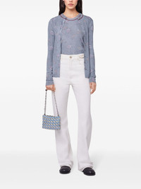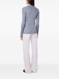 Metallic floral-print knitted cardigan Blue