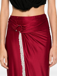 fringe-detailing midi skirt Highlights - Ruby red - Elasticated waistband - Gathered detailing - Asymmetric hem - Mid-length Imported Composition Viscose 90%, Spandex/Elastane 10% SIZE & FIT Model measurements Height 5 ft 10 in(1.79 m) Bust/Chest 33.07 in(84 cm) Hips 35.82 in(91 cm) Waist 24.01 in(61 cm) FittingInformation Designed with an asymmetric hem, this skirt is intended to be worn just below the waist Made from a midweight stretch fabric, this piece offers elasticity and flexibility when worn