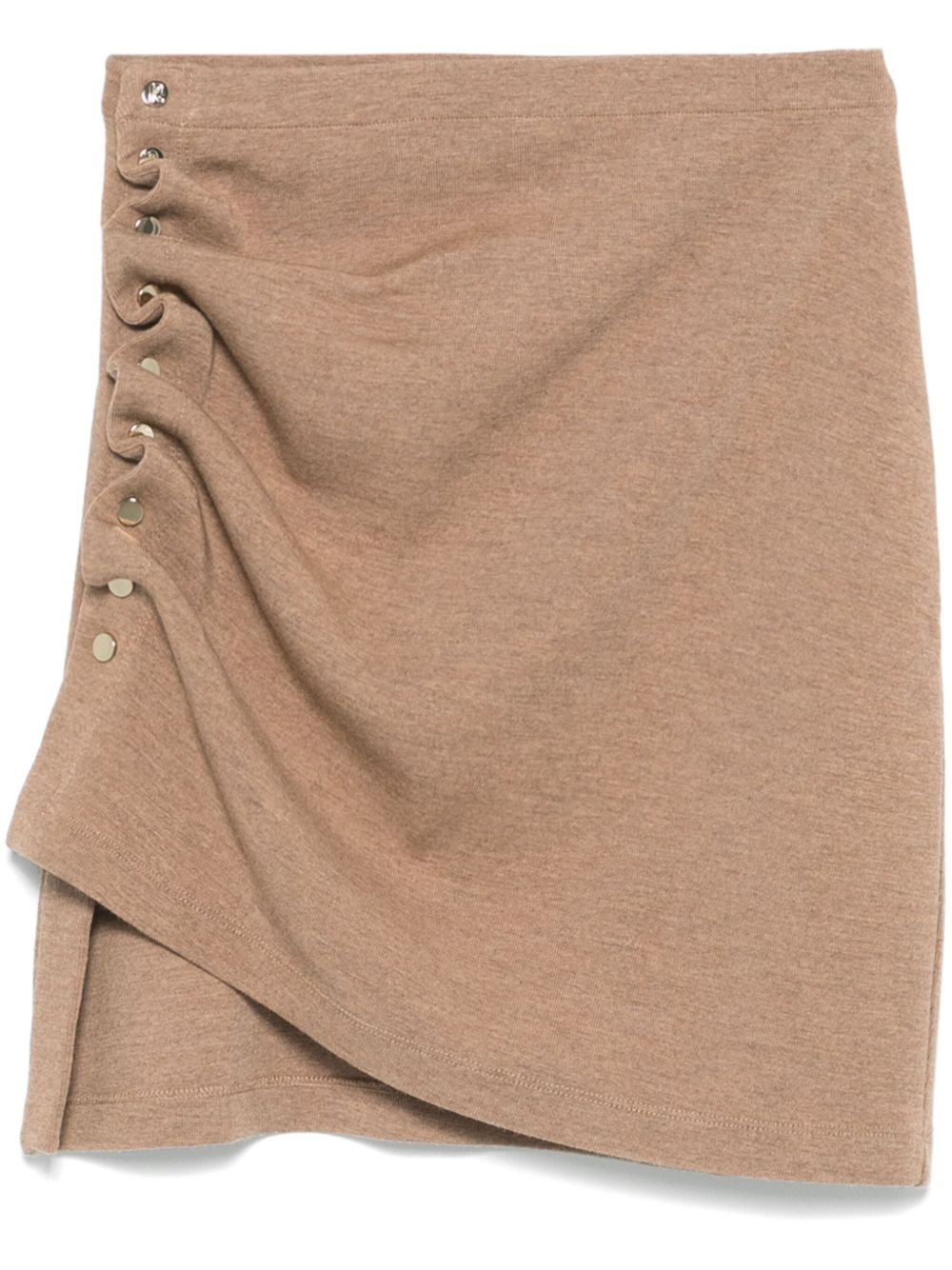 gathered mini skirt Highlights - Beige - Wool blend - Knitted construction - Side press-stud fastening - Gathered detailing - Asymmetric hem - Thigh-length Imported Composition Wool 99%, Spandex/Elastane 1% SIZE & FIT Model measurements Height 5 ft 10 in(1.77 m) Bust/Chest 31.1 in(79 cm) Hips 34.64 in(88 cm) Waist 24.01 in(61 cm) FittingInformation Designed with an asymmetric hem, this skirt is intended to be worn just below the waist Made from a midweight non-stretch fabric, this piece offers minimal elasticity when worn