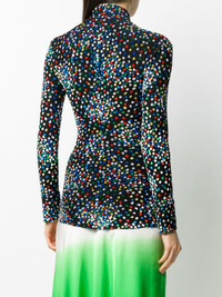 geometric print long-sleeve blouse Highlights - Multicolour - Geometric print - Concealed front fastening - Round neck - Long sleeves - Fitted-cuff sleeves Imported Composition Viscose 95%, Elastane 5% SIZE & FIT Model measurements Height 5 ft 10 in(1.78 m) Bust/Chest 31.49 in(80 cm) Hips 36.22 in(92 cm) Waist 25.59 in(65 cm) FittingInformation This piece fits true to size. We recommend you get your regular size Cut for a slim fit Made with a mid-weight stretch fabric