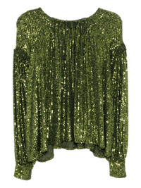 Haut top Highlights - Khaki green - Sequin embellishment - Crew neck - Long sleeves Imported Composition Polyester 100% SIZE & FIT Model measurements Height 5 ft 10 in(1.78 m) Bust/Chest 31.88 in(81 cm) Hips 37 in(94 cm) Waist 25.19 in(64 cm) FittingInformation Designed to be unstructured, offering a loose fit throughout Made from a midweight non-stretch fabric Washing instructions Dry Clean Only