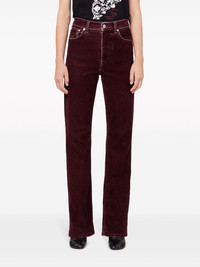 high-waist straight-leg velvet trousers Highlights - Burgundy - Stretch-cotton - Velvet - High-waisted - Belt loops - Front button and zip fastening - Classic five pockets - Straight leg Made in Italy Composition Cotton 49%, Viscose 49%, Elastane 2% Washing instructions Read Manufacturer Guidelines