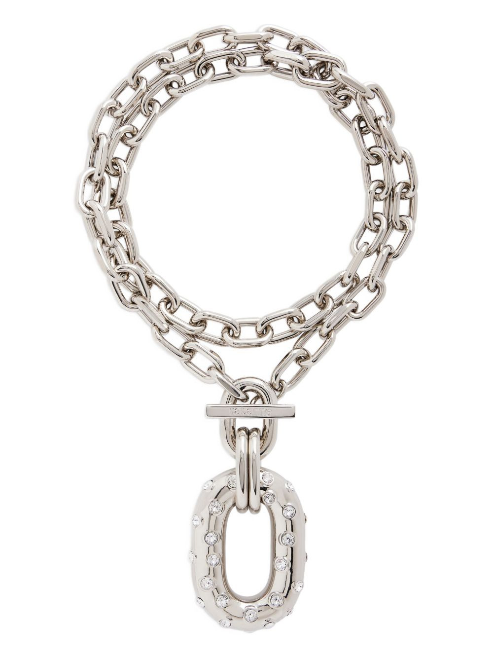 Iconic XL chain-link crystal-embellished necklace Highlights - Silver-tone - Double chain-link design - Oval-shaped pendant - Rhinestones embellishments - Textured pendant - Toggle fastening Made in Italy
