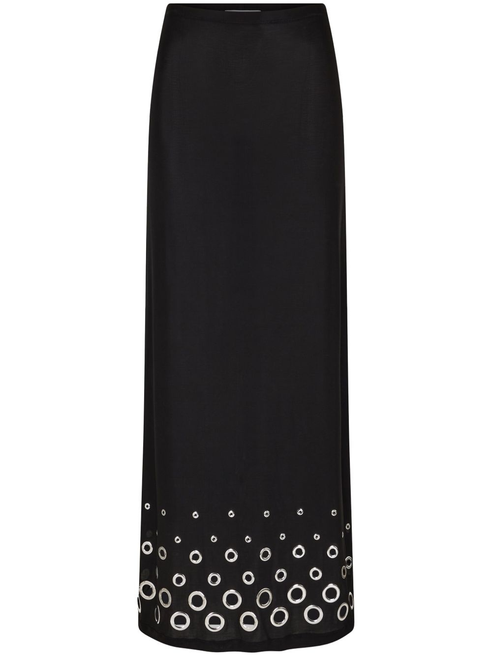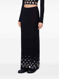 jersey maxi skirt Highlights - Black - Elasticated waistband - Rear slit - Metal eyelet detailing - Logo plaque Imported Composition Cupro 90%, Elastane 10% Washing instructions Read Manufacturer Guidelines