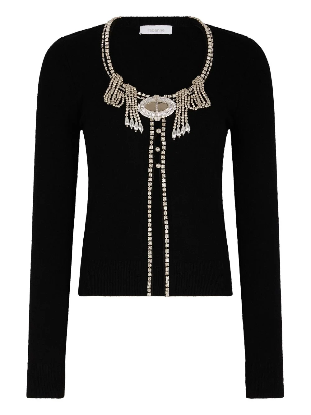 jeweled-embroidered cardigan Highlights - Black - Jeweled embroidery - Long sleeves - Round neck - Button fastening Imported Composition Viscose 70%, Polyamide 30% Washing instructions Read Manufacturer Guidelines