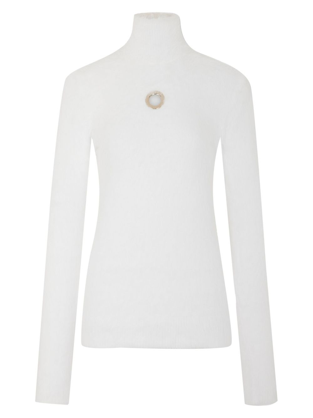 key-detail long-sleeves top Highlights - White - High neck - Key-shaped embellishment - Keyhole detail - Chain detail Made in Italy Composition Polyamide 100%, Fabric 100% Washing instructions Read Manufacturer Guidelines