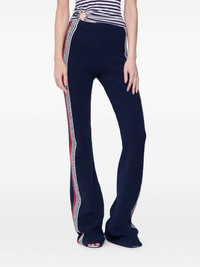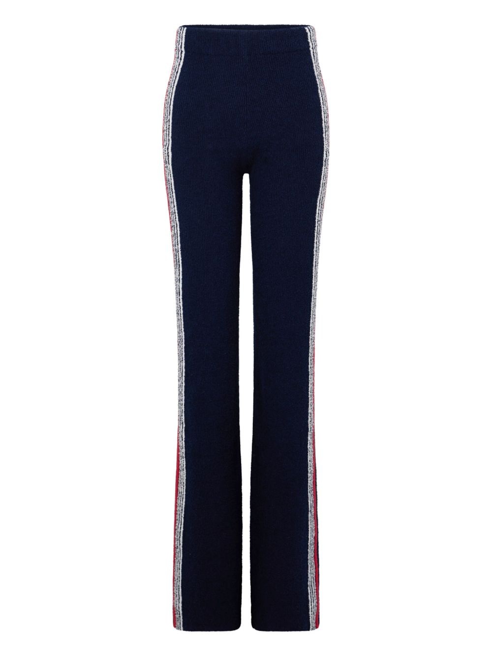 knitted trousers Highlights - Navy blue - Contrasting stripe detail - High waist - Ribbed texture - Flared hem Imported Composition Cotton 70%, Polyamide 30%